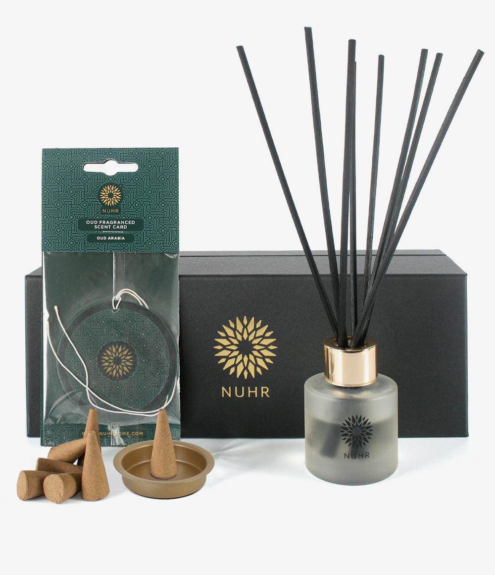 The perfect gift combination for any home includes our luxury reed diffuser and oud cones in Oud Arabia.